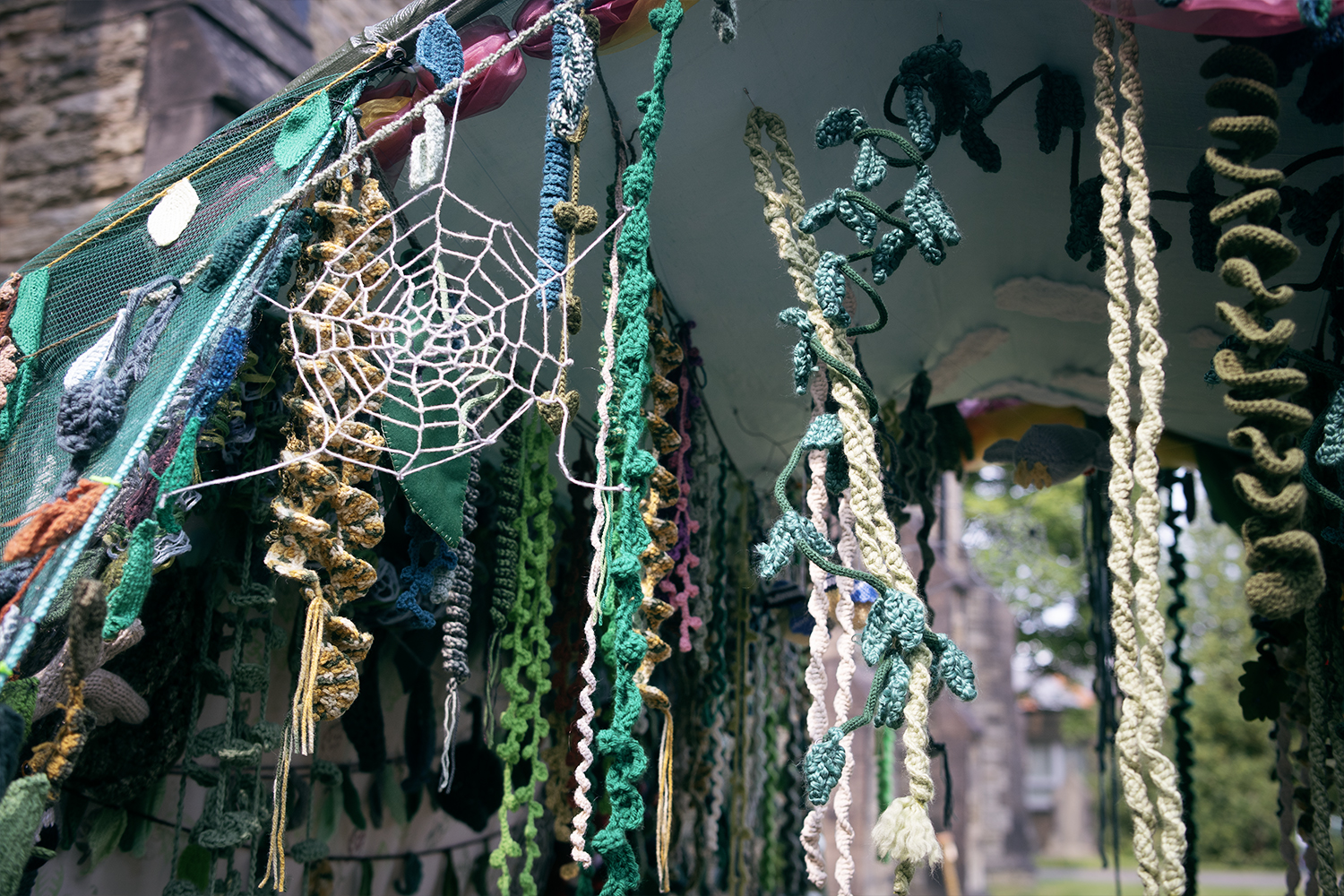WOVEN 2021 also witnessed a glorious cascade of flowers on Flockton church which later went on to be part of an exhibition at The West Yorkshire Playhouse in Leeds.