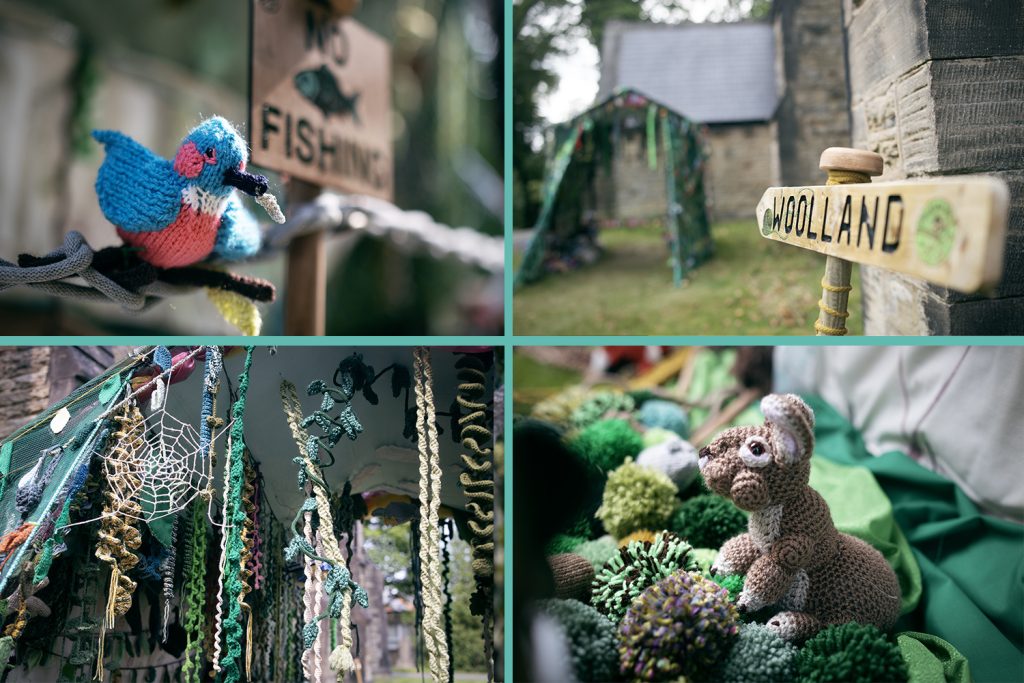 Although instigated and led by Flockton WI it was a true community enterprise with the WI members running workshops for local adults and children. The installation also echoed the WI’s environmental campaigns, such as Climate Change and Clean Rivers for People and Wildlife. The river running through the work was made of scarves that will be given to local charity shops and as gifts for vulnerable seniors and most of the installation has been donated to The Woodland Trust for use in schools and libraries.